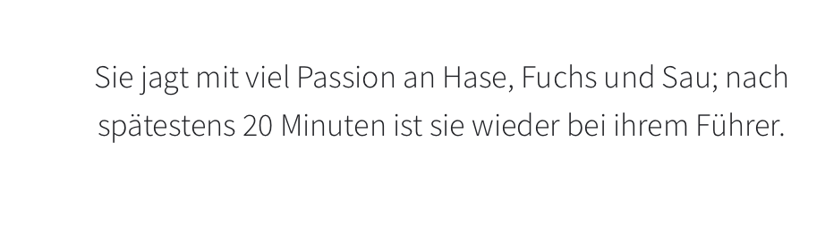 Cira, genannt Theodelinde, ist ein stets gut gelaunter, temperamentvoller und menschenbezogener Dackel. Sie jagt mit viel Passion an Hase, Fuchs und Sau; nach spätestens 20 Minuten ist sie wieder bei ihrem Führer.